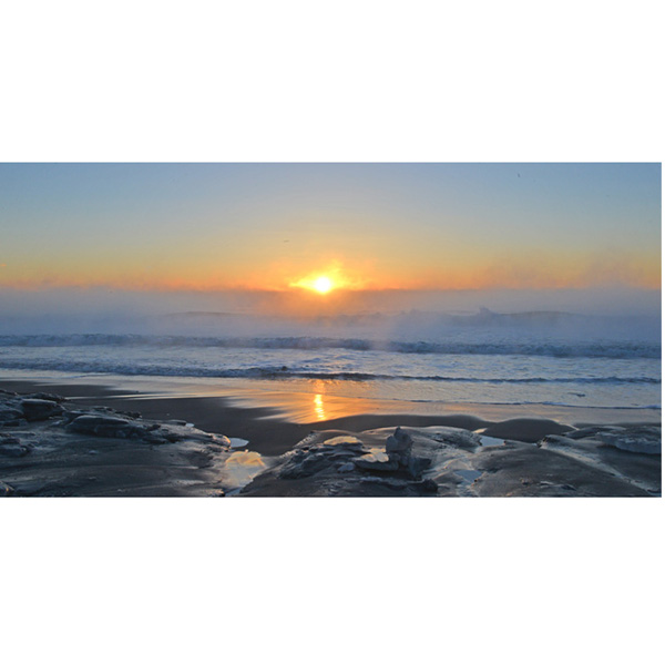 あの浜辺で日の出を待つときの寒さは格別、いつまでも忘れられないものです。