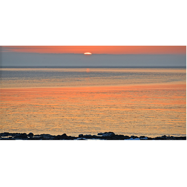 流氷が接岸しているときにも日の出撮影をしたのですが、氷がはりつめた海と日の出も素晴らしいものです。