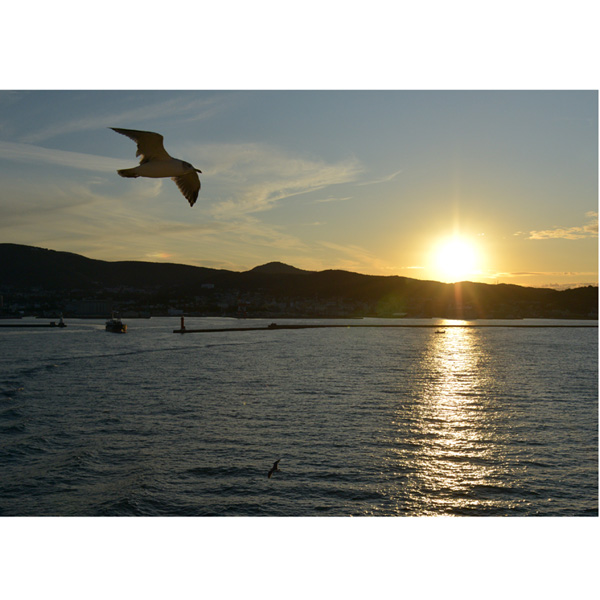 定刻17時20分出港でもあり、日没には間に合う時間ということで、甲板にでて、日没撮影をしてから、撮影ドライブの安全祈願の乾杯&食事。