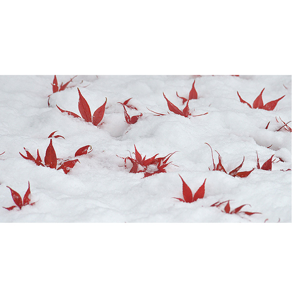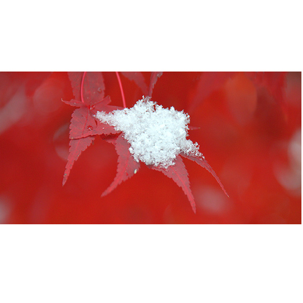 初雪の後で雪面に落ちるもみじの葉、例年は、引いて撮影することが多かったのですが、今年は、少し、アップ気味に撮影しようと・・。