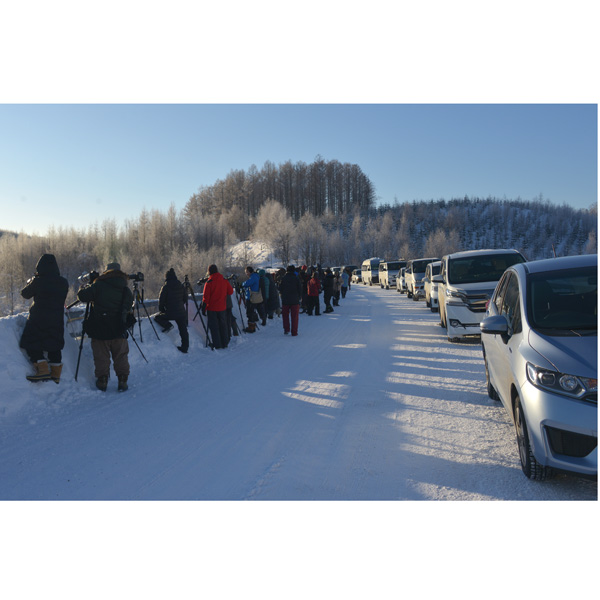 昨年あたりから、カメラマン・観光客が、往来する地元農家の方々の車を気にすることもなく、道の真ん中を歩き回ることもあり、パトカーが巡回するようになったとの話もあります。