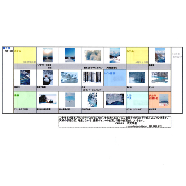 当方がご案内するときには、必ず、撮影ポイントと、その画像を一覧にして、このスポットにはご案内しますと明示させていただいています。