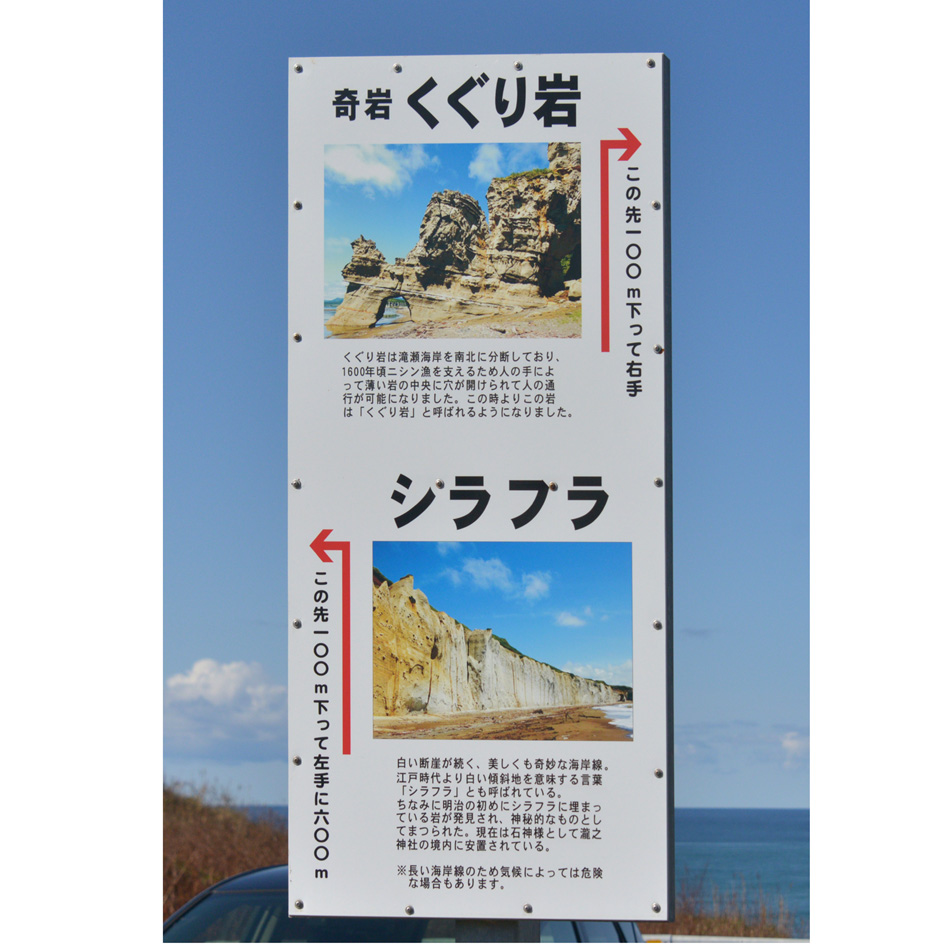 「くぐり岩」は約400年前、ニシン漁が栄えていた時代にニシンを陸路で運ぶために人の手でくり抜いたものだと伝えられています。