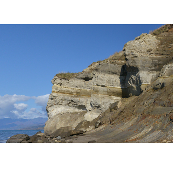 海岸まで下りて、「くぐり岩」の反対側に、「シラフラ」の白い断崖絶壁が連なっています。