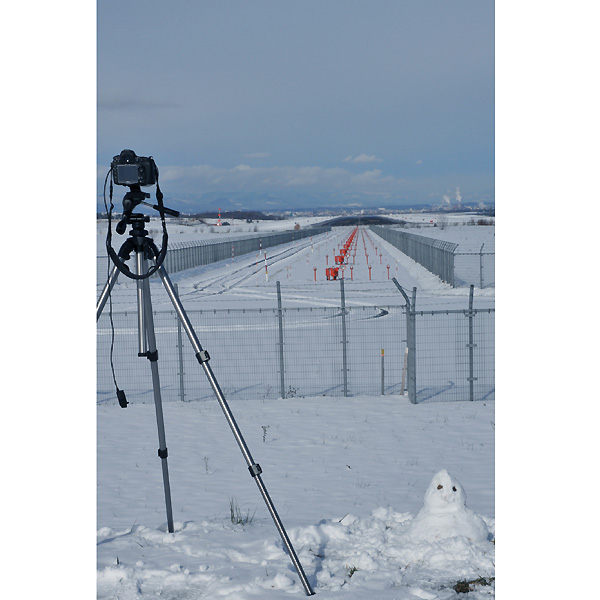 旭川空港離発着機の便数も少なく、その間隔が結構あり、カメラ内での合成をしたりして時間つぶしをしましたが、それでも、時間を持て余し気味。 それなら・・と、ちょっと童心にかえって、雪だるまでつくって、次の到着時間まで時間つぶしをしてしまいました。 トラクターで通りかからった農家の方が、笑いながら、「水でも持ってくるか・・?」と、声をかけていただきましたが、そこまでつくる気もありませんでしたので、丁重にお断りしました。 そうなんですよね。北海道の雪は水分が少ないから、固まりにくいのですよね。 雪像づくりも、雪と水とを混ぜて固まらせているんですよね。