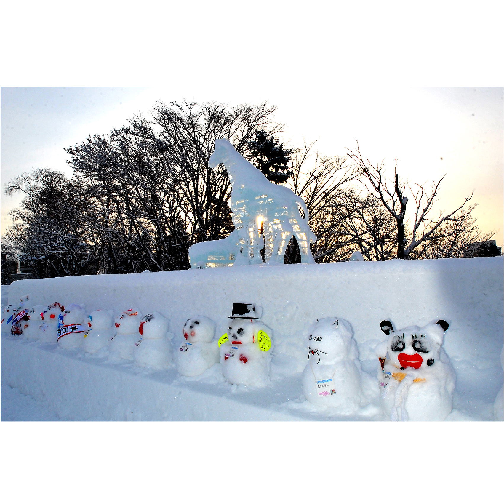 今週末には、3月です。 なが~い冬も先が見えた感じです。 まだまだ、安心はできませんが、除雪・排雪もすすみ、道路も路面が出て、春めいてきました。 そんな話題を、早朝の撮影場所で会話をしています。 そんな会話の中で、今年も、ついでに、「“雪だるま”の写真を結構撮ったな!」との話を聞き、同じようなことをしているカメラマンがいるんだと思った次第です。 そこで、思いついたように、今まで撮った“ゆきだるま”のなかから、探し出してみました。
