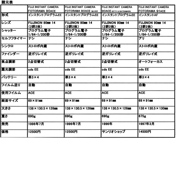 FUJI INSTANT CAMERA FOTORAMA 90ACE のサンリオショップ向けとして、発売された。