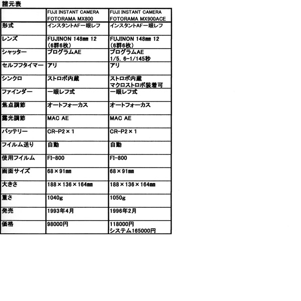 FUJI INSTANT COLOR ACE FILM の発売に伴い、従来の FUJI INSTANT CAMERA FOTORAMA MX800 を大幅に見直し、専用のクローズアップレンズの組み合わせにより、4㎝までの近接撮影が可能となり、特殊撮影にも自由自在にシステムアップができる製品として、1996年2月に発売された。