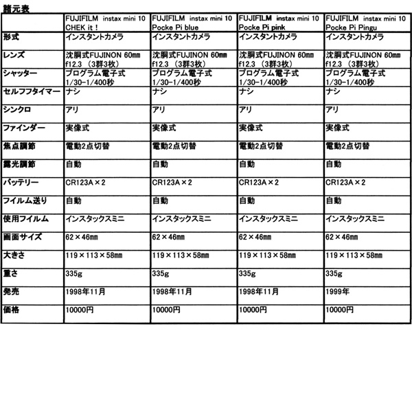 FUJIFILM instax mini 10 Pocke Pi Blueとともに、タカラのOEM品として、1998年12月に発売された。