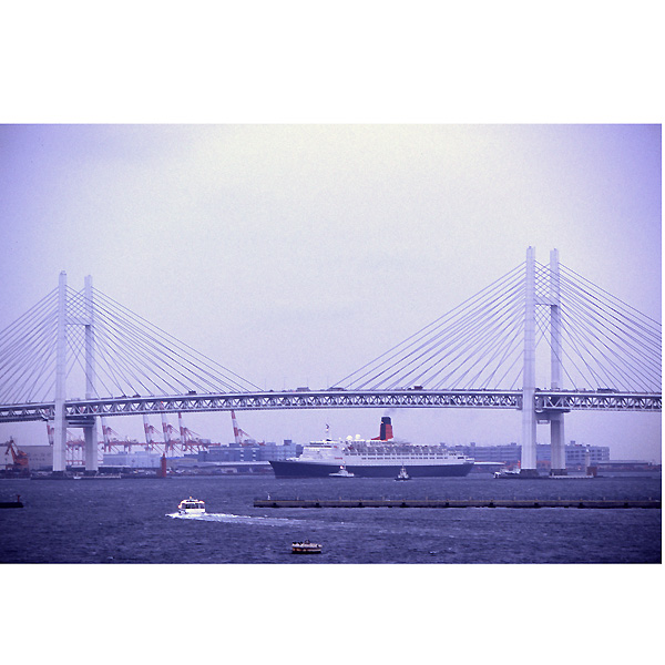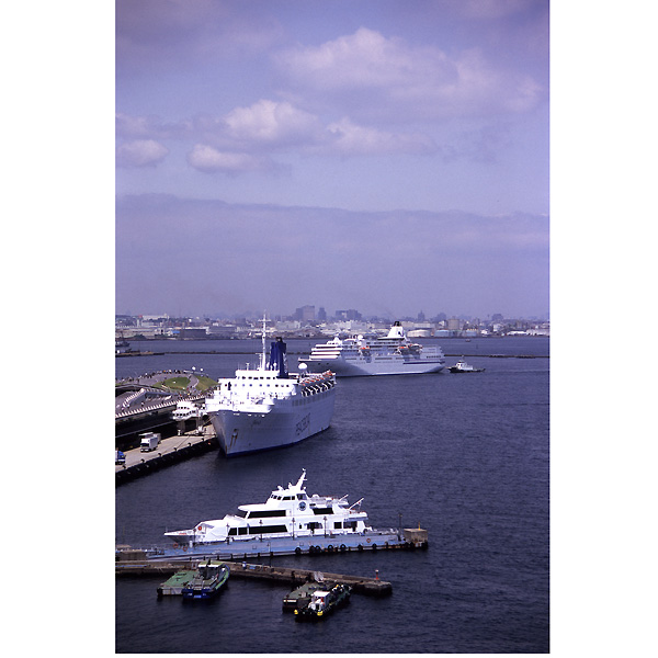 今までに撮影したのは、ほとんどが、客船そのものだけではなく、できるだけ、横浜らしい感じが出るような撮影に心がけたつもりです。 山下公園一帯、大さん橋のほかに、横浜らしい風景とともに撮影するには絶好もスポットであった、ベイブリッジのスカイウォークがお気に入りのところだったのですが閉鎖されてしまい残念です。 あとは、氷川丸船上甲板、上京した時の定宿でもある「スターホテル横浜の部屋」とか、産業貿易センター10階「東天紅」でお昼を食べながら・・とか、「山下臨港線プロムナード」とか、「シーバス」などなどからの撮影がスポットとして・・・。