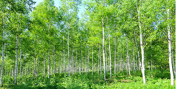 新緑に白樺林は、若葉の緑色がまぶしいくらいキレですね。 そして、白樺の幹の白砂が、いっそう引き立ててくるるよな感じで、大好きです。 なかなか、まっすぐきれいに伸びている白樺林にお目にかかれなくなりましたが、東川町で見つけた白樺林で・・・。