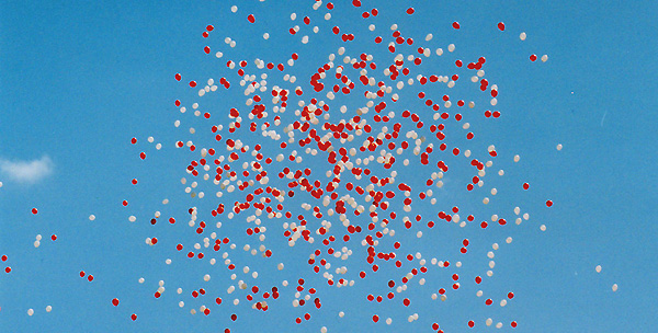 毎年、6月になると「美瑛ヘルシーマラソン」が開催されます。 このヘルシーマラソン、年号しか入っていないので、何年続いてきたのかわかりにくく、毎年参加しているという知人達に聞いたら、ほとんどの人が知りませんでした。そんな中で、一人だけ、2012年の大会が、25年目の節目の年だったはず・・と教えていただきましたので、今年は27回目ということなのでしょうね。 今から、20年も前のことですが、会社で有志社員を募り、参加したことがありました。 走ることより、そのあとの川原で行う焼肉パーテイに参加するのが楽しくて、何年間か続けたことがあります。 いつも、カメラマン役でしたが、大勢の参加者の中で、参加した社員を探すのは一苦労。 結局、開会式で撮影したのは、この風船だけでした。