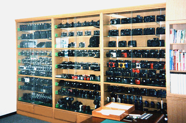 北海道フジカラーの社内では、それらのカメラを飾るケースを作り、その中に展示し、さらに、神奈川フジカラー横浜への転勤に伴い、ケースとカメラとをすべて、そのまま移動しました。