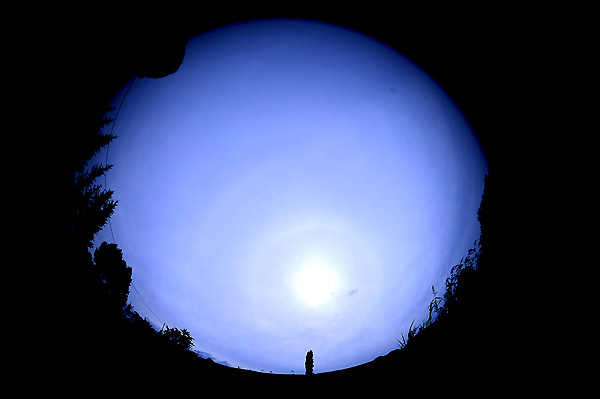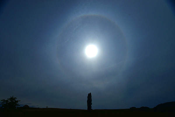 それでも、丁度、一本のポプラのところでは、太陽をいれて一本のポプラの撮影をしようと、撮影の位置決めをして、見上げたら、うっすらと日暈が・・・。 しばらくすると、日暈もはっきり見えてきて、黙々と撮影することになりました。 これだけでも、大収穫ということでしょうか。