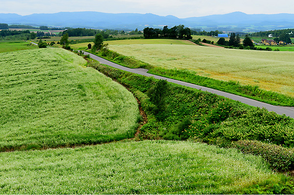 今回の行程は、青い池→白ひげの滝→美聖橋→美瑛神社→美瑛駅→赤い屋根の家→千代田の丘→3本の木→哲学の木→四季彩の丘→美瑛酪農放牧場→美馬牛駅→クリスマスツリーの木→新栄の丘→美馬牛原野第一号踏切→嵐の5本の木→里仁の丘→ジェットコースターの道→一本のポプラ→マイルドセブンの丘→三田裏の丘→ざわざわ村→北西の丘→ケンとメリーの木→セブンスターの木→ア・ラ・ポテトの丘→親子の木→パノラマロード紅花・・と、撮影ツアーでは2泊3日のコースを1日でフル稼働。