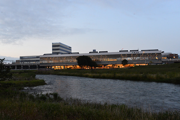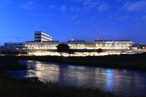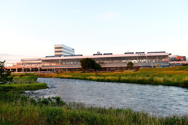 新たに変身した旭川駅舎の撮影を頼まれ、駅正面だけではなく、反対側も・・ということで、忠別川と駅舎とを撮影してきました。
