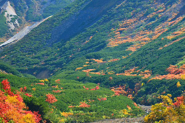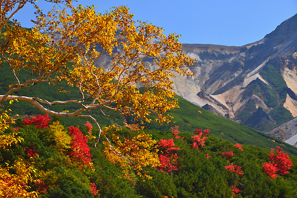 毎年のように、十勝岳温泉に紅葉撮影に来るのですが、この3年間は、雪に覆われたり、急激の冷え込みや、気温がさがらない時があったりで、綺麗な紅葉をみることができませんでした。 今年は、期待通りの紅葉で、9月27日・28日の十勝岳温泉紅葉まつりにピッタリ合わせたように、紅葉真っ盛りです。