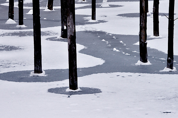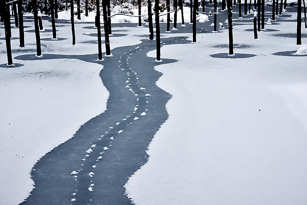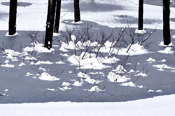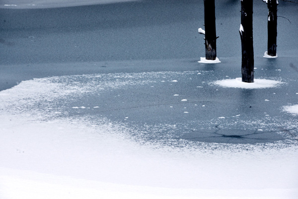 どか雪が早々と降ったこともあり、瞬く間に池全体が氷ってしまっていまい、青い池をいれてという撮影はできませんでしたが、自然が作った氷の造形美というのでしょうか、普段は見れない光景にお目にかかることができました。