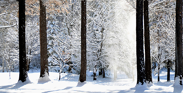 木に枝に積もった雪が、時どき、ドス~ンと、音を立てながら落雪するところに出くわし、慌ててシャッターを切りました。