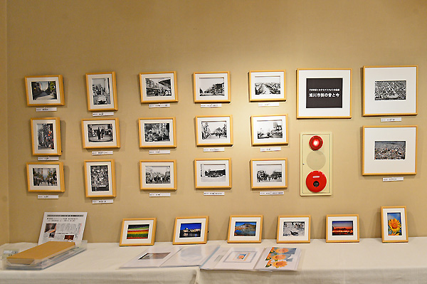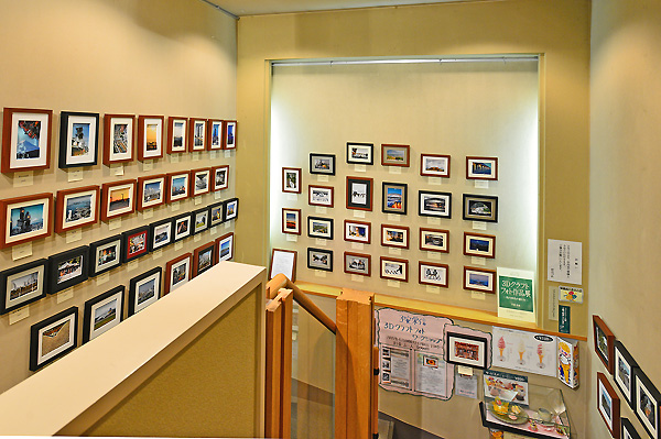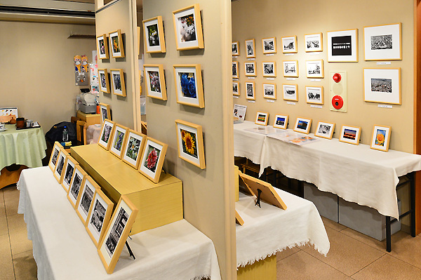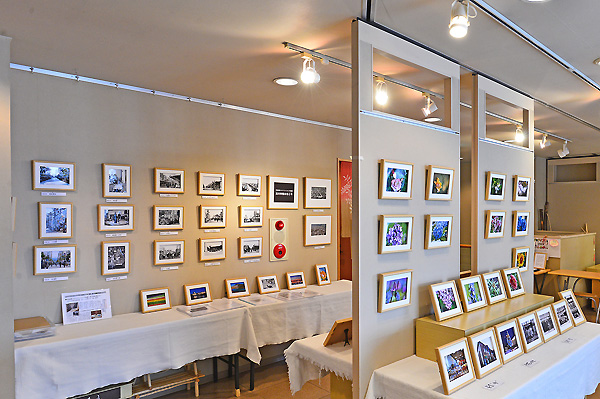 今回の作品展の会場は、甘味処とギャラリーが併設されておりますので、甘味処から見えるスペースには、北海道で撮影したお花のシリーズと、壺屋本店の昔の画像による作品も展示しました。
