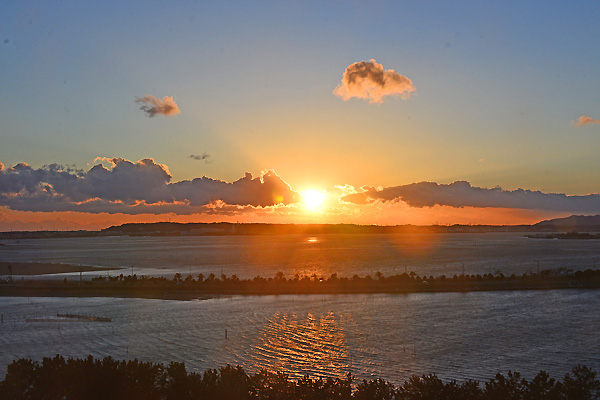 最終日の宿泊先、浜名湖ロイヤルホテルからの眺めも良く、浜名湖に沈む太陽、そして、静岡市内方面から昇る太陽を撮影してみた。