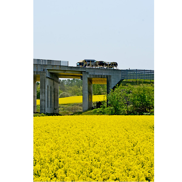 メイン会場を後にして、丸加高原に上り、点在する黄色い畑を眺めるのも良いものだ。 そして、丸加高原を下りてきて、点在する菜の花畑を撮影し終え帰途に。
