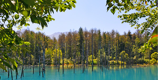 見事に晴れ渡った日に美瑛に行きましたので、折角だからとの気持ちもあり、青い池へ。