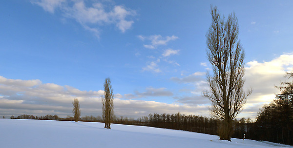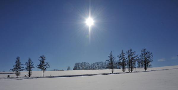 たまには、下の道の駐車場所からの撮影を・・とは、思うものの、最近は、冬の北海道を・冬の美瑛をとの売り込みもあり、海外からの観光客も急増し、どうしても人が入ってしまう。