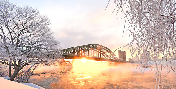 昨年は、石狩川にかかる「旭橋」を入れて、霧氷を入れての撮影にこだわりました。