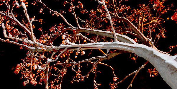 そんな、ななかまどを夜撮ってみては・・と、思いつき、忘年会の帰り道に立ち寄って、撮影してみました。
