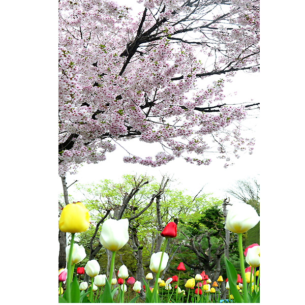 たまには、こんなことをしても・・・と、思いつき、5月2日の蕾状態の日から5月13日の遅れて咲いたサクラの、桜吹雪、あるいはサクラとチューリップとのコラボレーションまで、カメラを抱えて足しげく通った次第です。