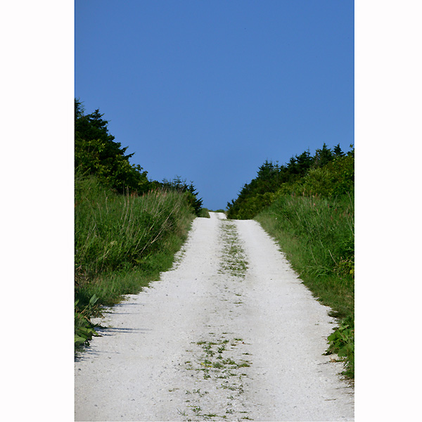 ホタテの貝殻の白と空の青、白い道周辺に生える草の緑からなるコントラストはとてもきれいで、結局、この「白い道」を往復して車で走ってきました。