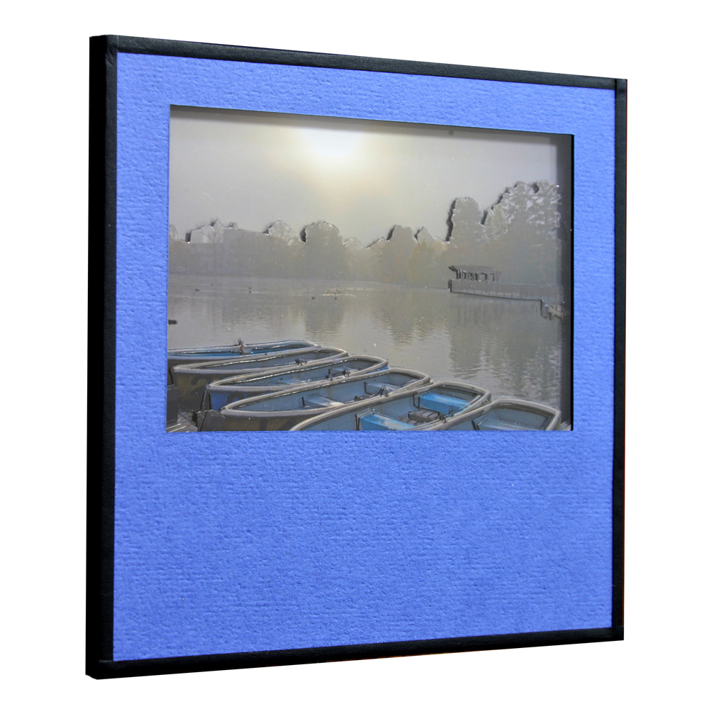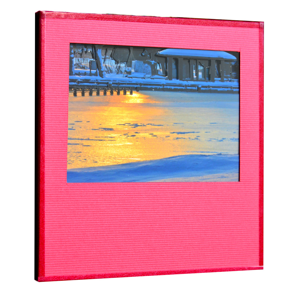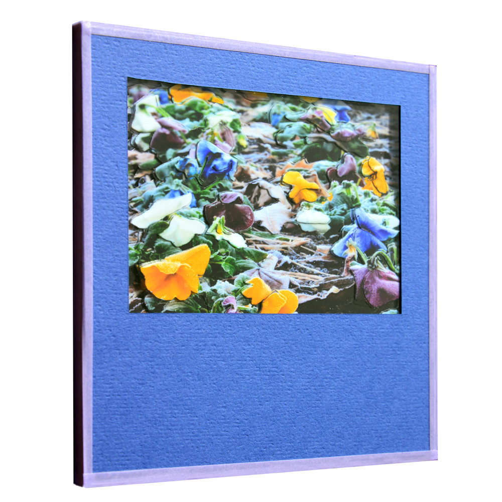 1㎜厚の両面パットは、浮かせるために1枚のみ使用し、あとは、すべて、両面テープで貼り重ね、作品全体の厚さは5㎜とし、表面は、透明プラスチック板でカバーしています。