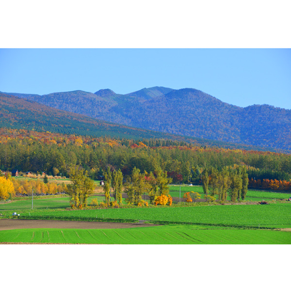 ポプラの黄葉にはちょっと早かったが、富良野岳と手前の前富良野岳、旭岳はもちろん、十勝岳までくっきりと見えた。