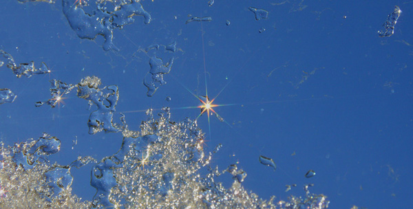 その氷に陽がさしはじめたら、輝きが出てきて、スノウクロスフィルターを装着して撮影してみた。