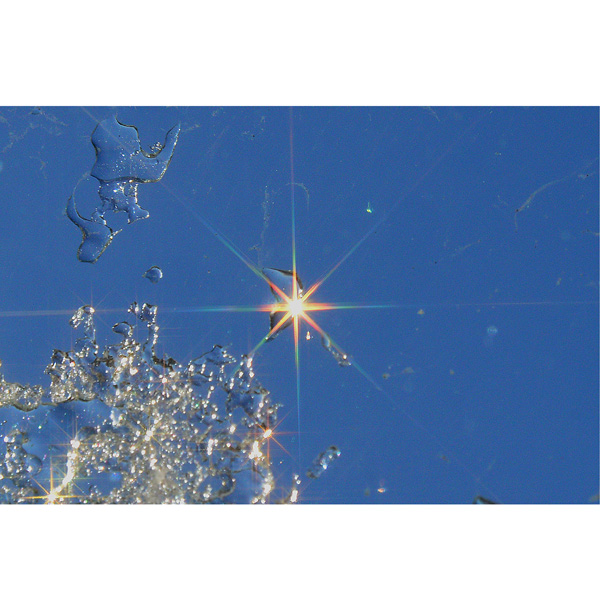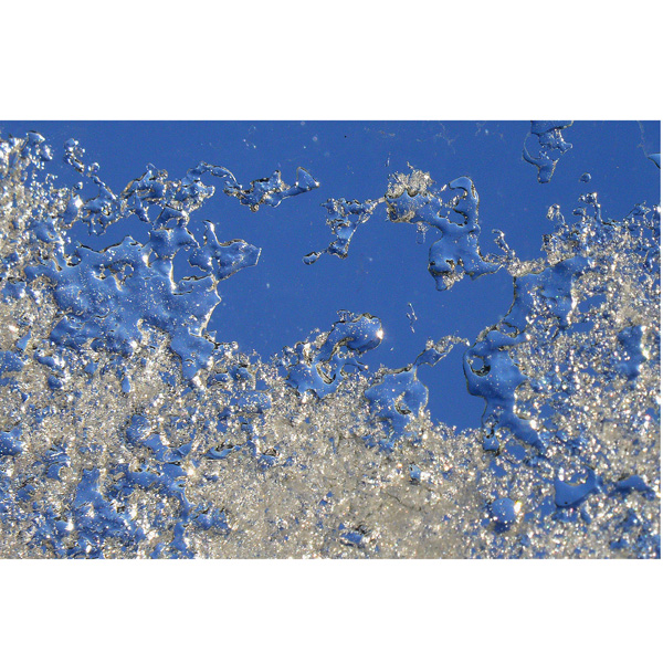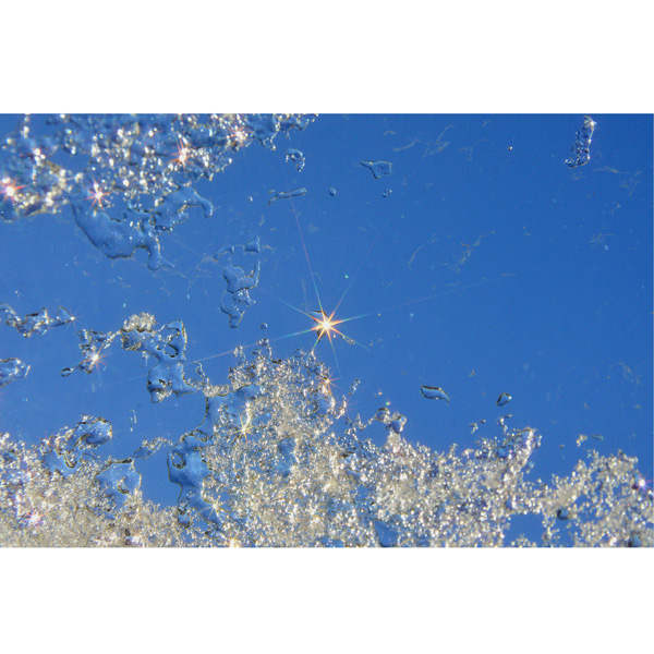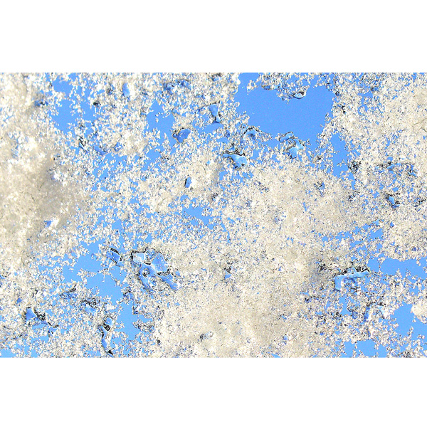 でも、青空とともに日が差すと、雪の結晶はみるみると融け始め、氷に・・。