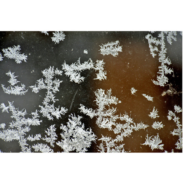 自然に作られた霜の模様が何ともいえず、家に戻って、カメラを持ちだして撮影した次第。