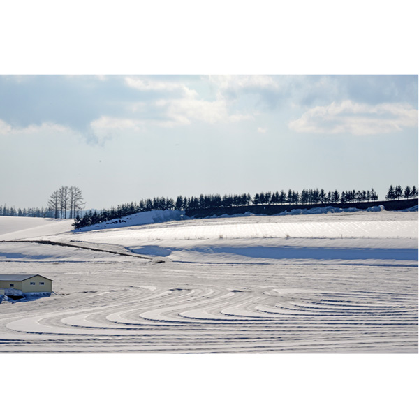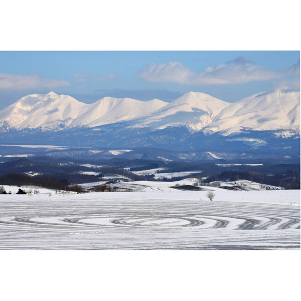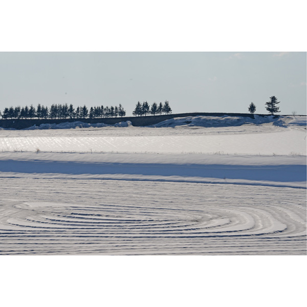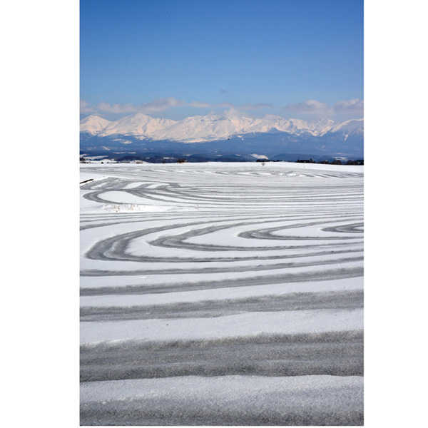 どこということもなく、なんとなくの撮影ドライブ、とりあえずは気の向くままに・・ということだったが、里仁の丘まで行ったら、広大な畑に融雪剤がまかれ、少しずつ融け始めている真っ白な畑が目に入った。