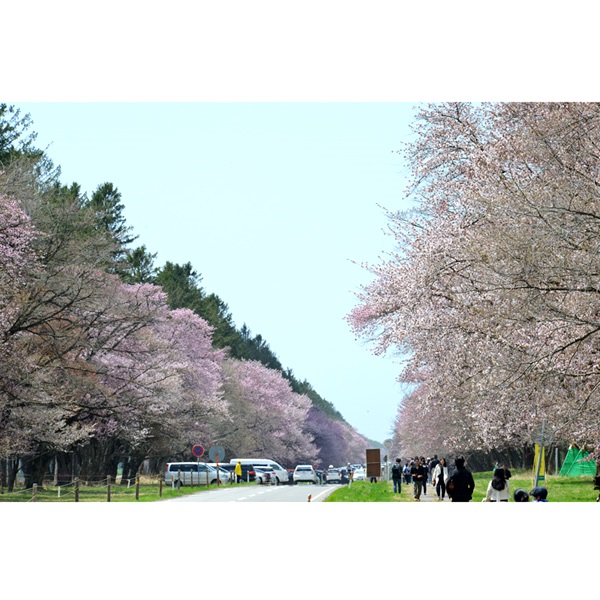 大正時代になって、牧場の方々が、3年かけて、3000本のさくらの木を植え、それが成長して今日の桜並木に。