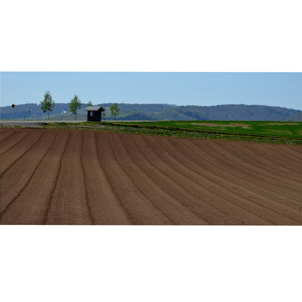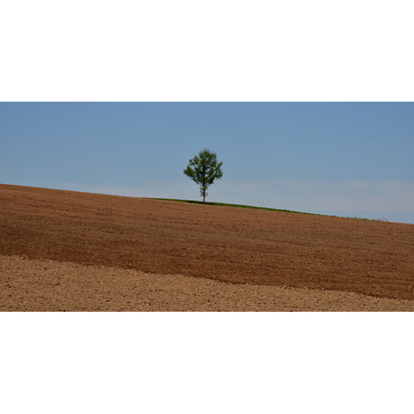 土地の境界線の目印ともいわれる立木、美瑛の丘に限らず、剣淵でもおなじように目につきましたが、畑の土の色の違いと1本の木とをシンプルに組み合わせてみました。