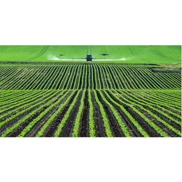 畑の緑色の鮮やかなラインと散水、慌てて撮影した一齣。
