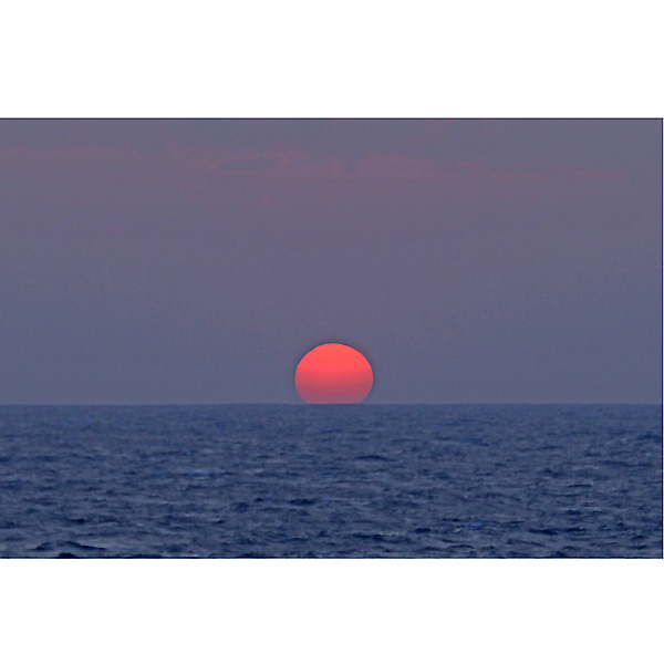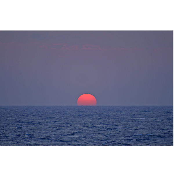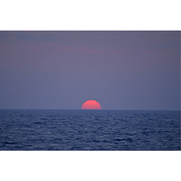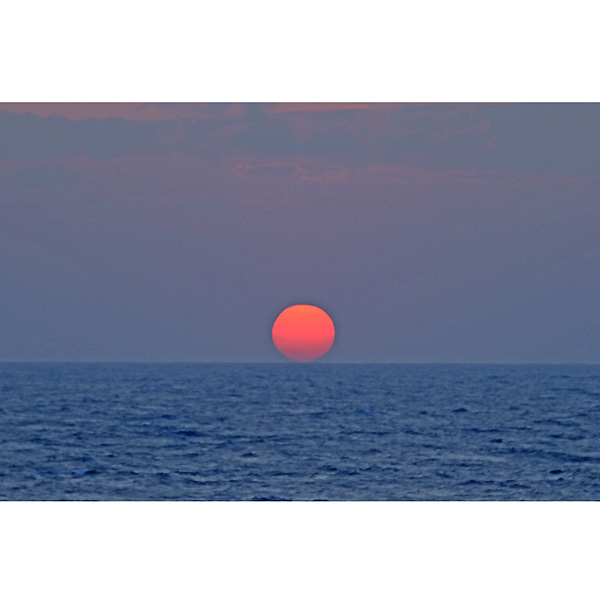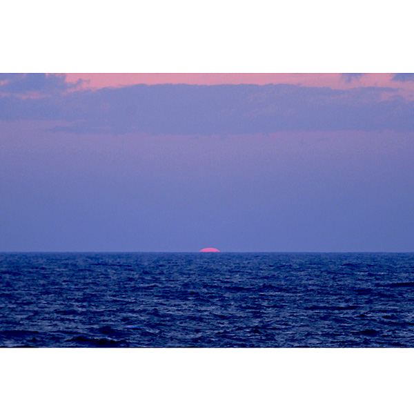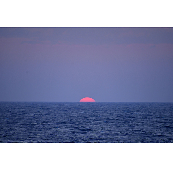 その折の画像は改めてアップしますが、帰りのフェリー船上から、久しぶりに見る海に沈む太陽をみて、ついつい激写。