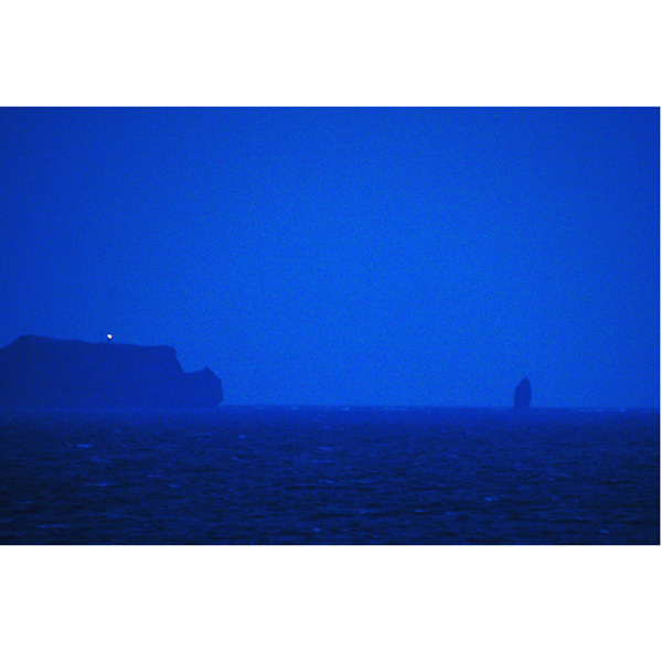 日没後、あたりも暗くなってきて、遠くに薄らと見える、神威岬が・・・・。