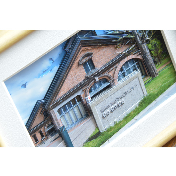 “3Dクラフトフォト”とは 聞きなれない言葉ですが、同じ原版からプリントした10枚の写真を、遠景から少しずつ切り取り、一定の間隔をあけて貼り重ね、深さのあるフレームに入れると立体的にみえる作品のことです。